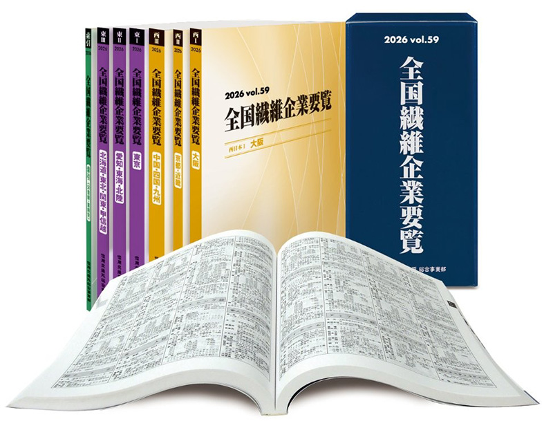 全国約1万5千社の繊維関連企業を地域エリアごとに6冊に分冊。お手元でスピーディに情報を探せます。